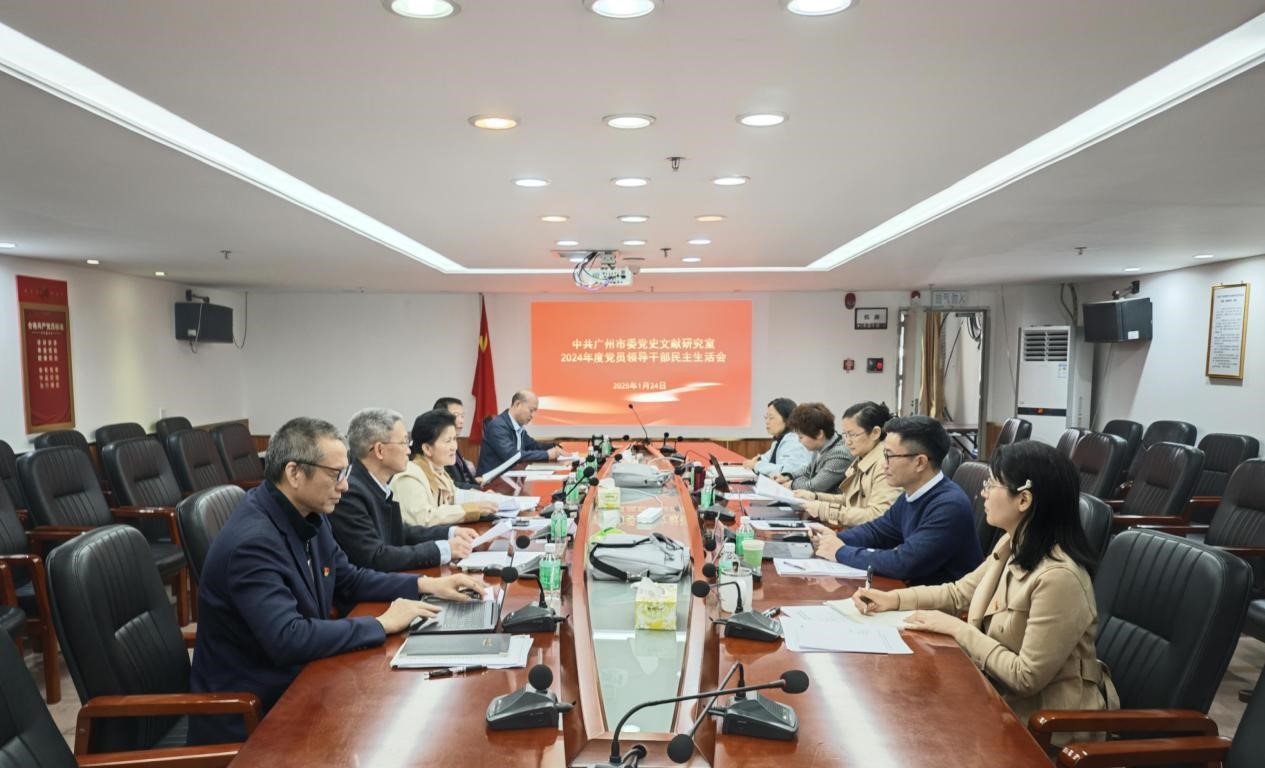 1月24日上午,廣州市委黨史文獻(xiàn)研究室召開2024年度領(lǐng)導(dǎo)班子民主生活會(huì),廣州市委黨史文獻(xiàn)研究室主任黃小晶主持會(huì)議,帶頭開展批評(píng)與自我批評(píng),并作總結(jié)講話,室領(lǐng)導(dǎo)常國(guó)光、張杰、劉新峰、羅滿園參加會(huì)議并開展批評(píng)與自我批評(píng)。室副主任胡巧利列席會(huì)議,市委組織部干部五處張吉娜同志、市紀(jì)委監(jiān)委駐市委組織部紀(jì)檢監(jiān)察組陳志超同志到會(huì)指導(dǎo)。